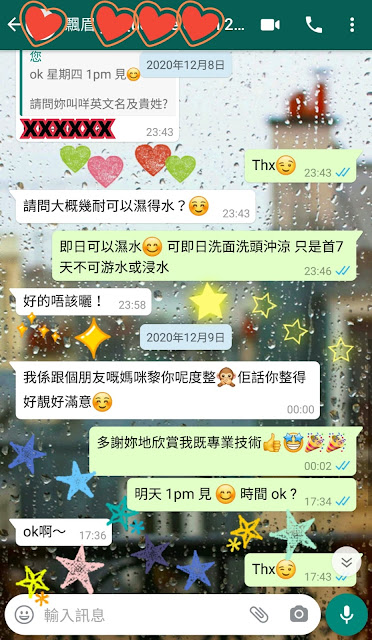 -髮際線: 可keep2年, 無痛及不變色的, 首次做後的6個月內免費補色微調1次